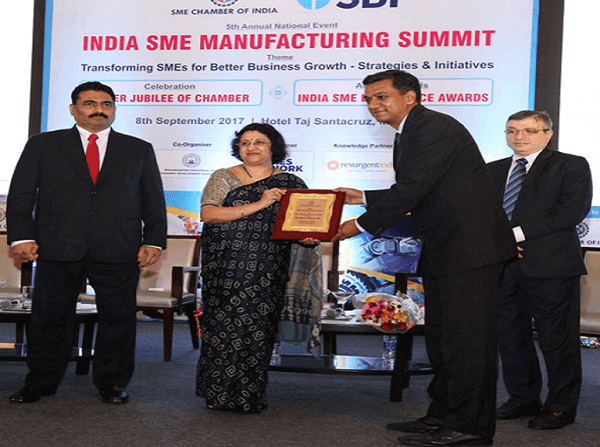 SME Chamber of India's "Best Exporter of the Year Award" at the hands of Smt. Arundhati Bhattacharaya, Chairman of SBI.
